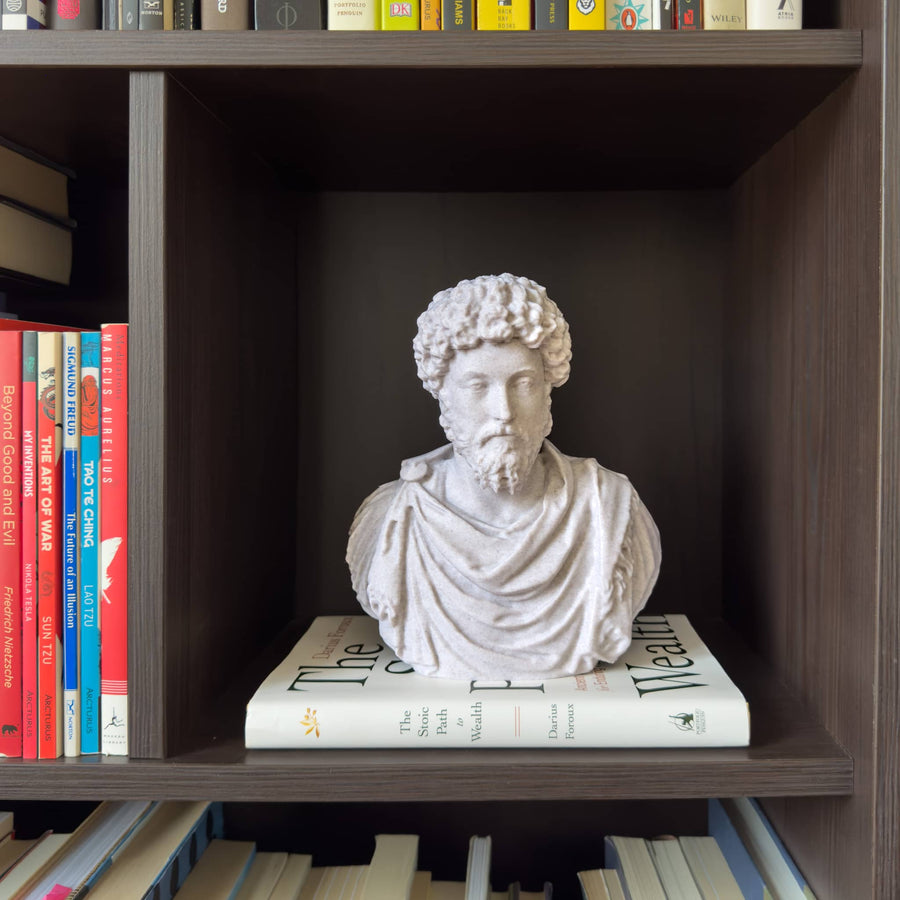 Bring Marcus Aurelius into your home with this beautiful bust. This striking sculpture features a detailed representation of the Roman emperor.