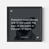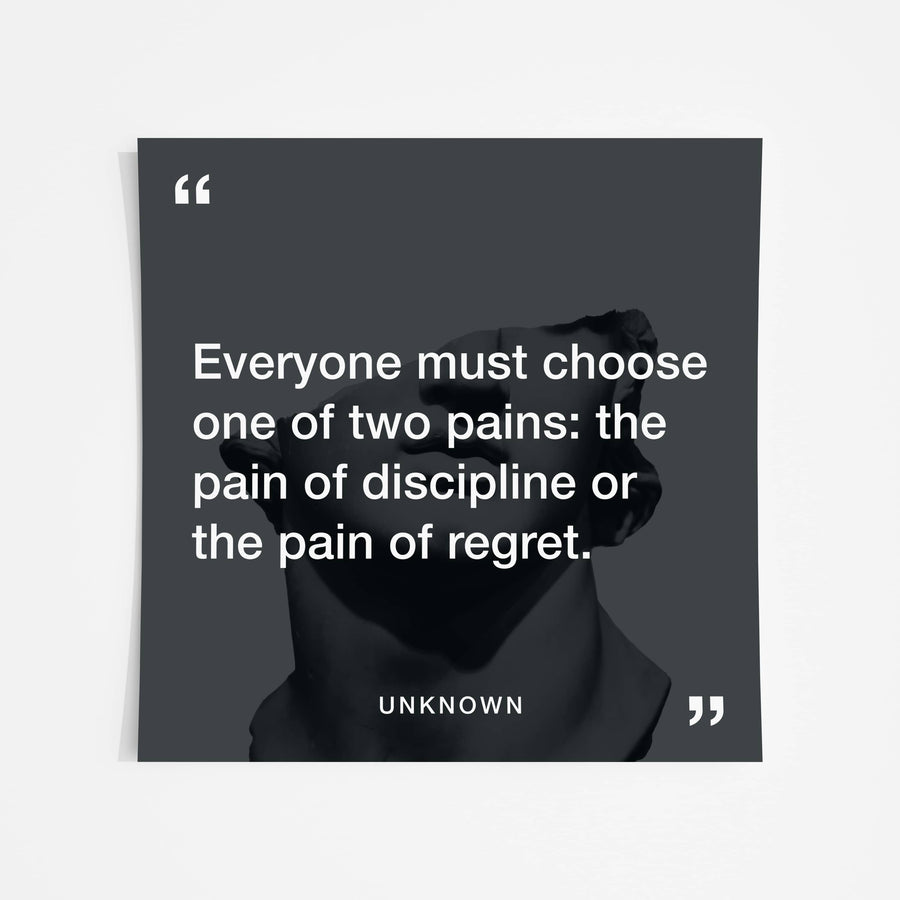 "Everyone must choose one of two pains: the pain of discipline or the pain of regret."